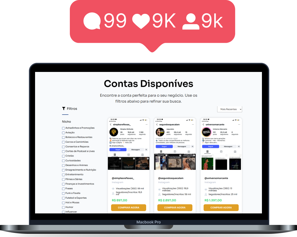 Compre contas digitais verificadas com alto engajamento ou venda suas contas com segurança. A plataforma mais confiável do Brasil para transações de contas de redes sociais.